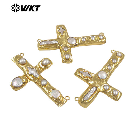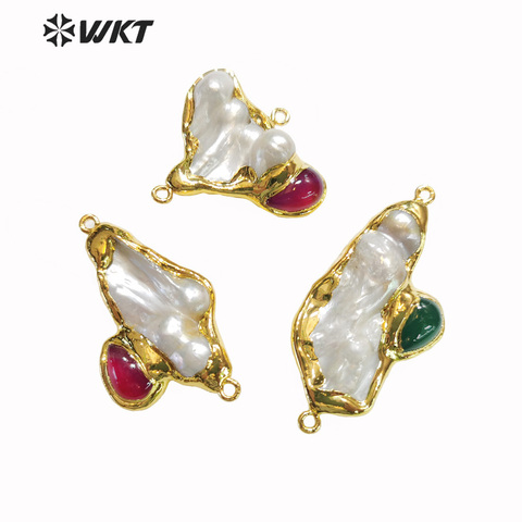 WT-PC011 WKT تصميم جديد 18K قطع متينة متينة ثلاثية لؤلؤ المياه العذبة موصلات لصنع الأساور