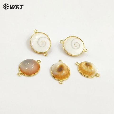 WT-PC009 الرائع 18 قيراط الذهب الحقيقي مطلي شكل بيضاوي طبيعي ابيض أشكال المابي موصلات القوقعة مع الحلقات لمجوهرات تصاميم القلادة